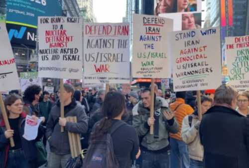 Plusieurs centaines de manifestants se sont rassemblés, samedi 28 février, à Times Square, à New York, pour protester contre les frappes en Iran. Les participants, issus de groupes activistes socialistes et antisionistes, ont scandé des slogans comme « Halte à l’Iran ! » et ont établi un lien entre ces frappes et la campagne israélienne à Gaza. Des pancartes proclamaient des messages tels que « Défendons la Palestine » ou « Pour le droit de l’Iran à la dissuasion nucléaire ». Cette mobilisation reflète une opposition forte à ce que les manifestants qualifient de « génocide brutal » et d’ « intérêts impérialistes sionistes ».